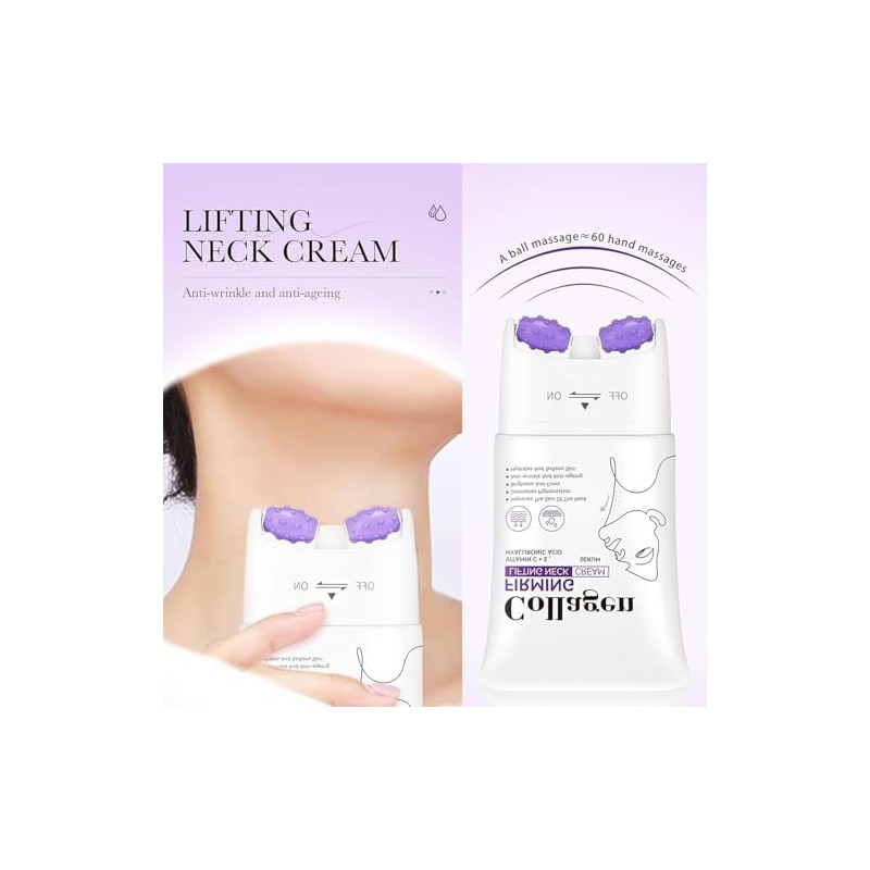 🌟 ⭐ Crema Reafirmante de Cuello, Reafirmante de Cuello con Masaje de Rodillos 2 en 1, Crema y Escote con Niacinamida y Ácido Hialurónico, Para una piel Suave y Joven ⭐ 🌟