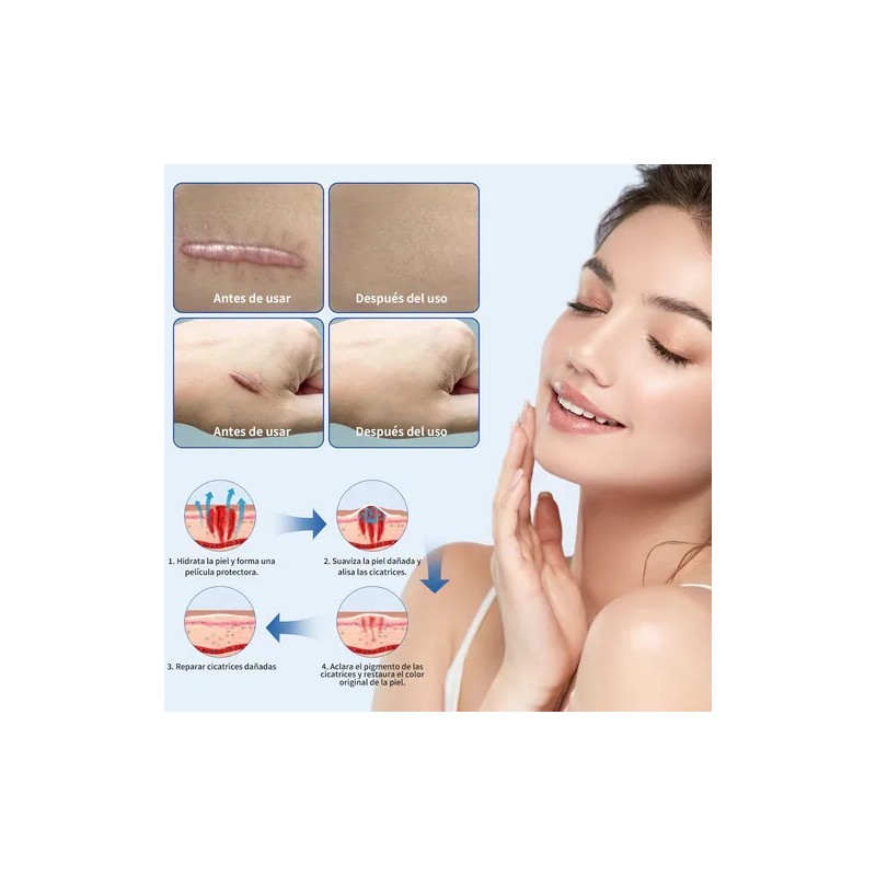 3.Resultados visibles: Uso continuo mejora la apariencia de cicatrices en pocas semanas.