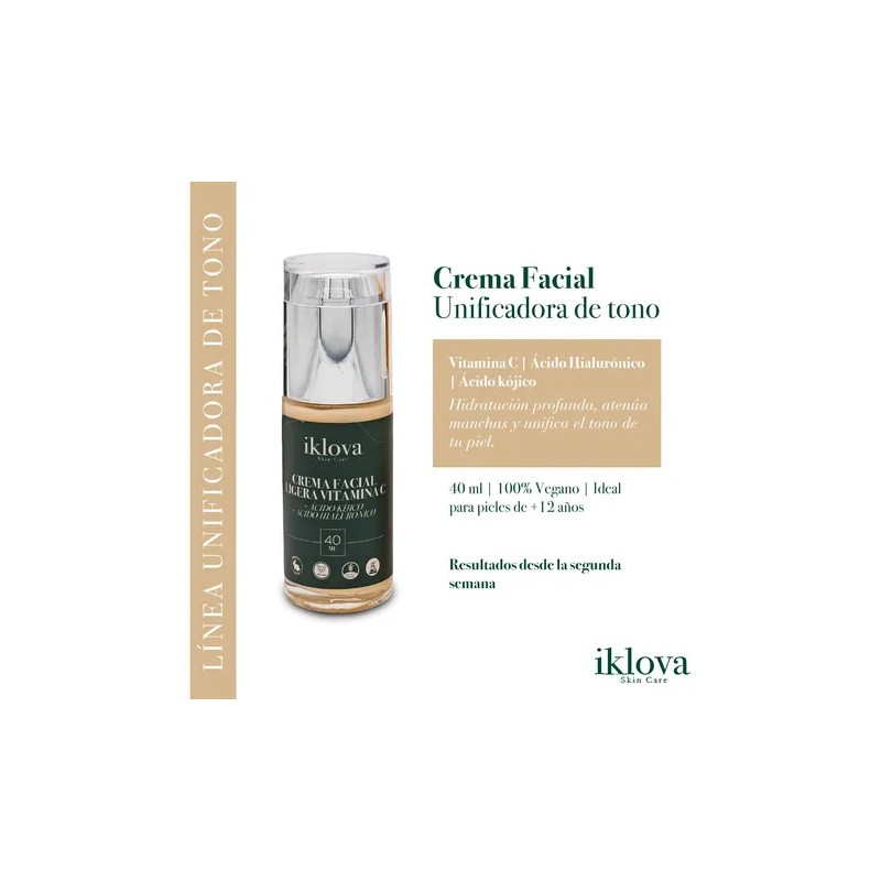 La Crema Facial Vitamina C + Ácido Kójico de IKLOVA es la solución ideal para quienes buscan unificar el tono de su piel y mejorar su luminosidad. Formulada con ingredientes de alta calidad, esta crema está diseñada para personas a partir de 12 años que desean combatir manchas y signos de fatiga en el rostro. Su textura ligera se absorbe rápidamente, dejando la piel suave y radiante.