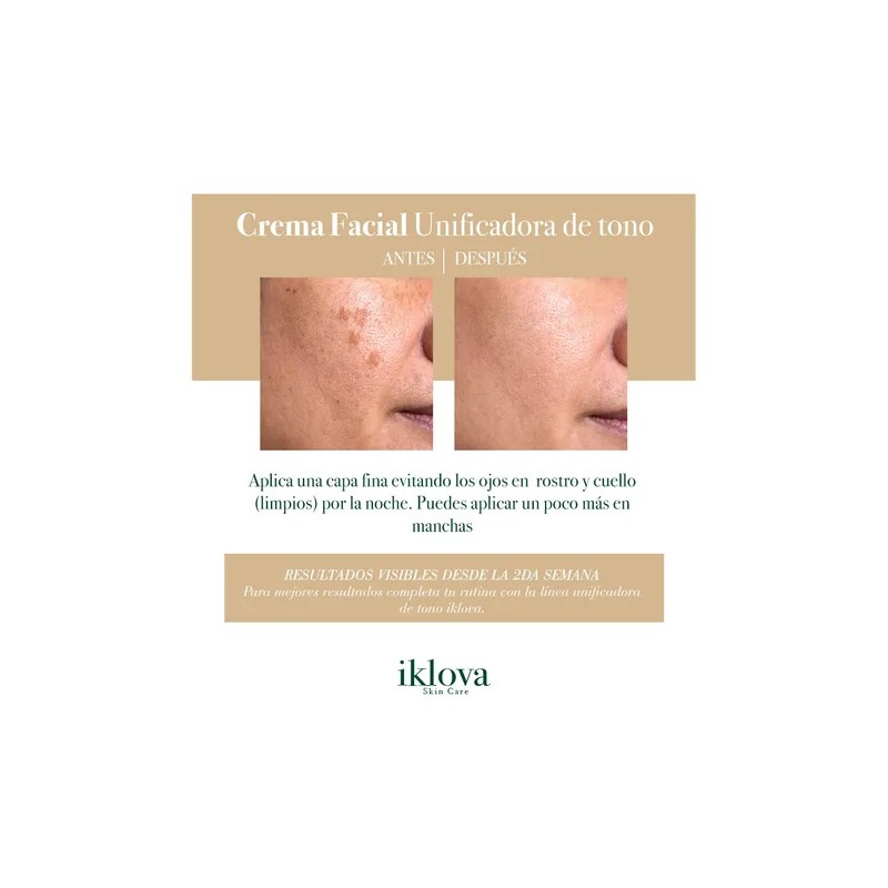 Incorpora esta crema en tu rutina diaria de cuidado facial y experimenta una piel más uniforme y revitalizada. Ideal para todo tipo de piel, su uso regular te ayudará a lograr un cutis más saludable y luminoso.