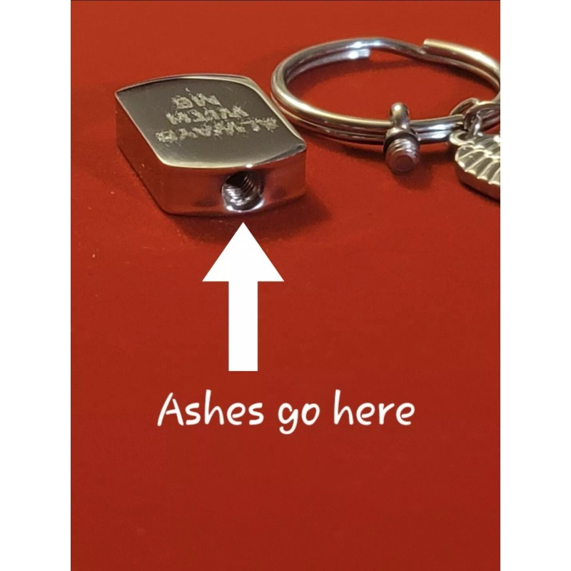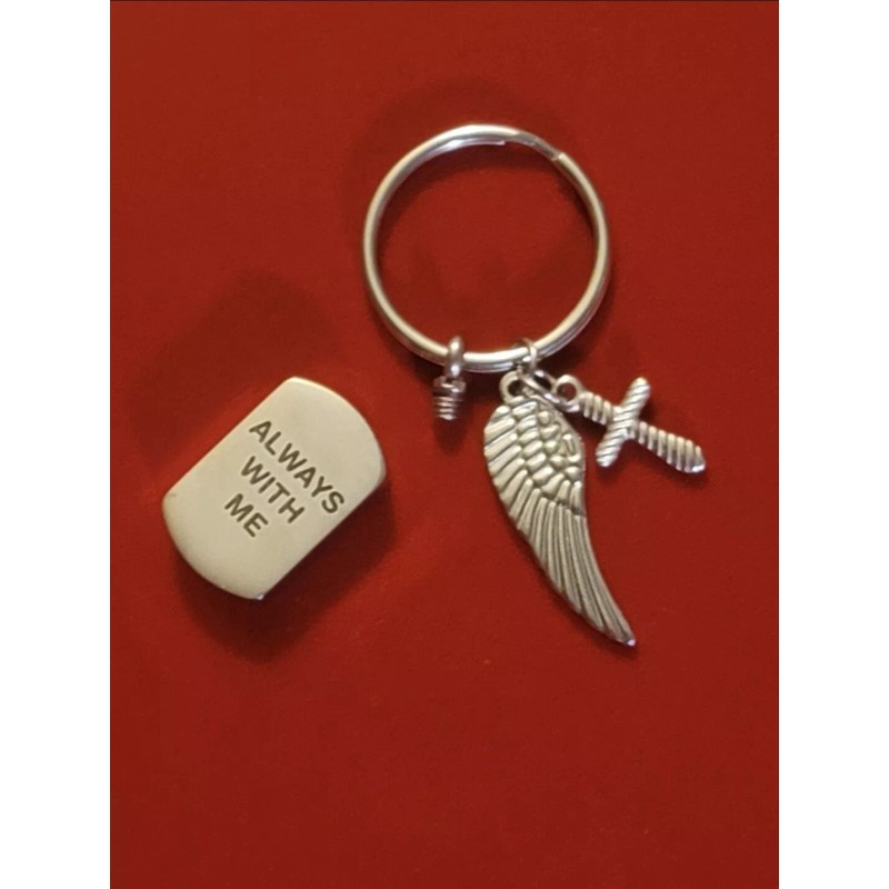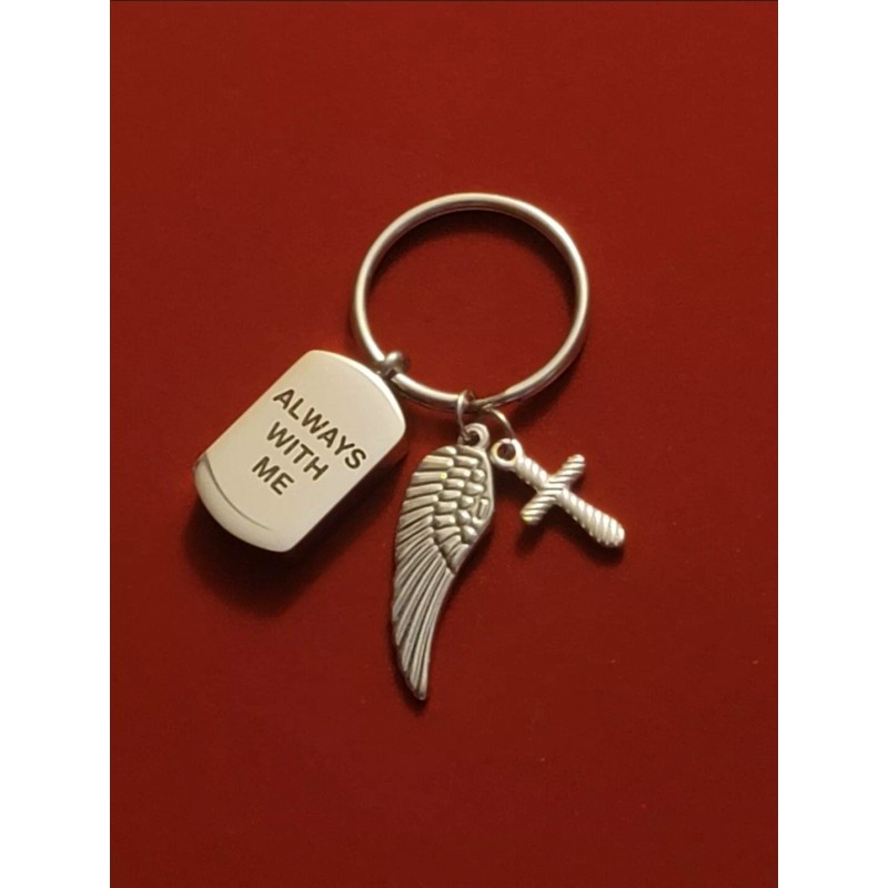 Cremation Keyring, Urn Keyring, Urn Jewelry, Silver Urn Keyring w/ Cross & Wing