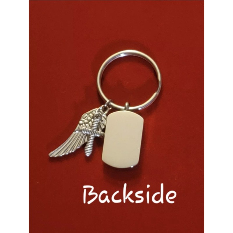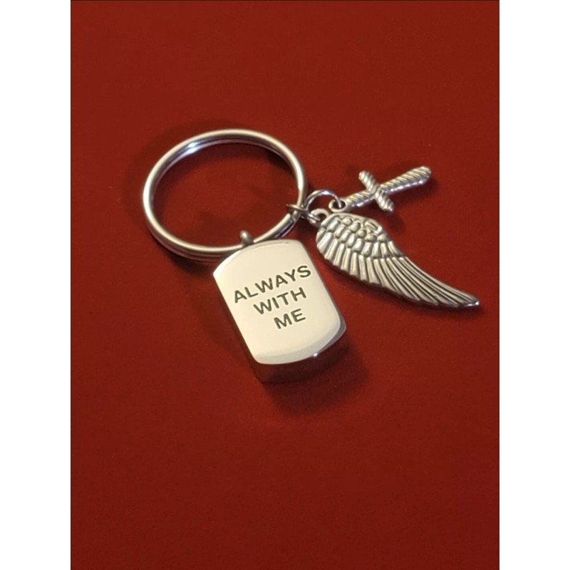 Cremation Keyring, Urn Keyring, Urn Jewelry, Silver Urn Keyring w/ Cross & Wing.
