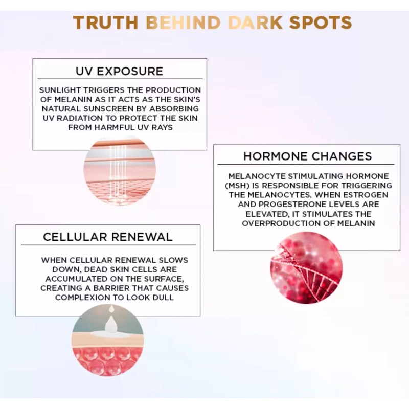 STIMULATES CELL RENEWAL: The L’Oréal Paris brightening cream reduces 5 years of dark spots, hyper-pigmentation and reveales even skin tone by stimulating cell renewal