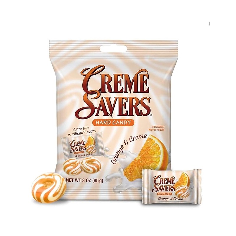 • This 3oz (12 count) orange creme chews bag is a convenient option for both home and office. Creme Savers are brought to you by Iconic Candy which is dedicated to bringing people together to enjoy the finest time-honored candy.