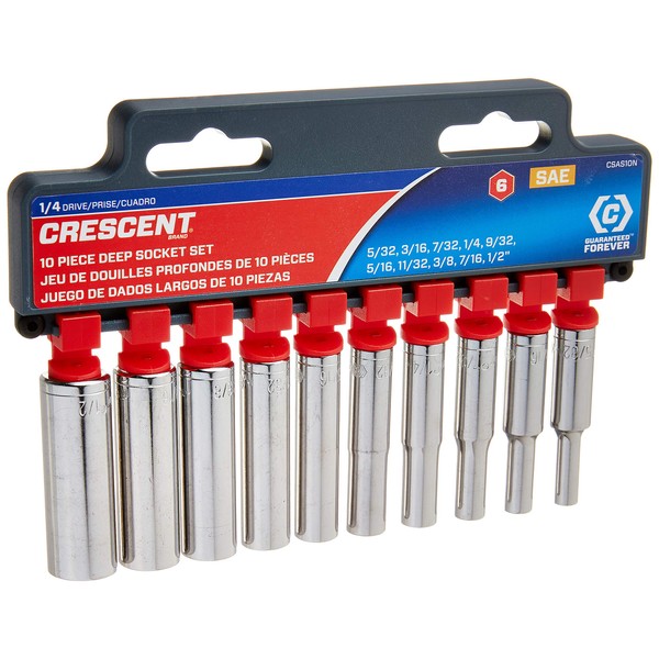 Crescent 10 Piece1/4 Drive 6 Point Deep SAE Socket Set - CSAS10N