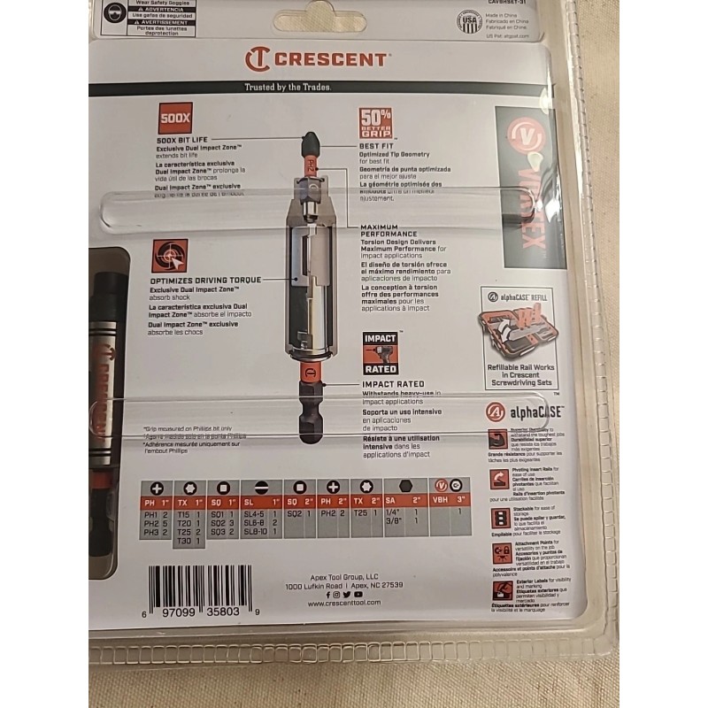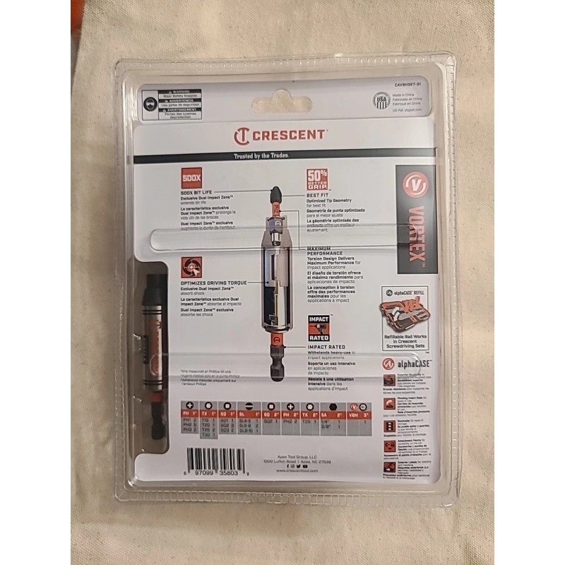 Crescent 31 PC VORTEX(TM) Impact Driver Bit Set Cavbhset-31