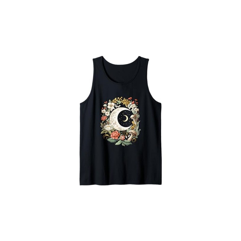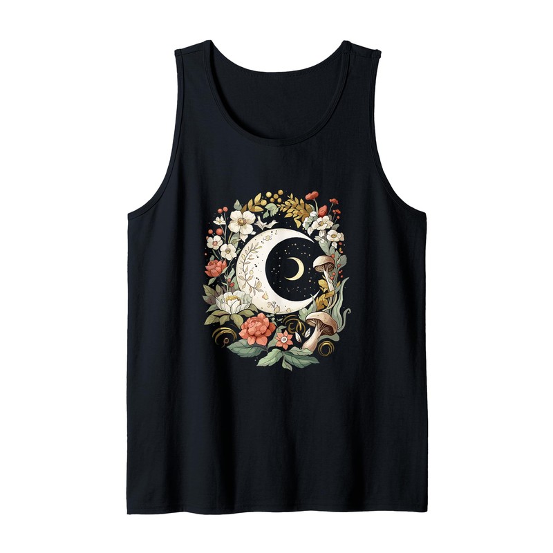 Crescent Moon with Flowers and Mushrooms Celestial Botanical Tank Top
