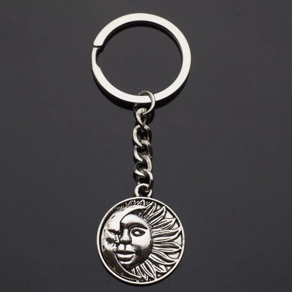 Crescent on Moon Face of Sun Sunshine Faces Pendant Keychain Gift Key Chain