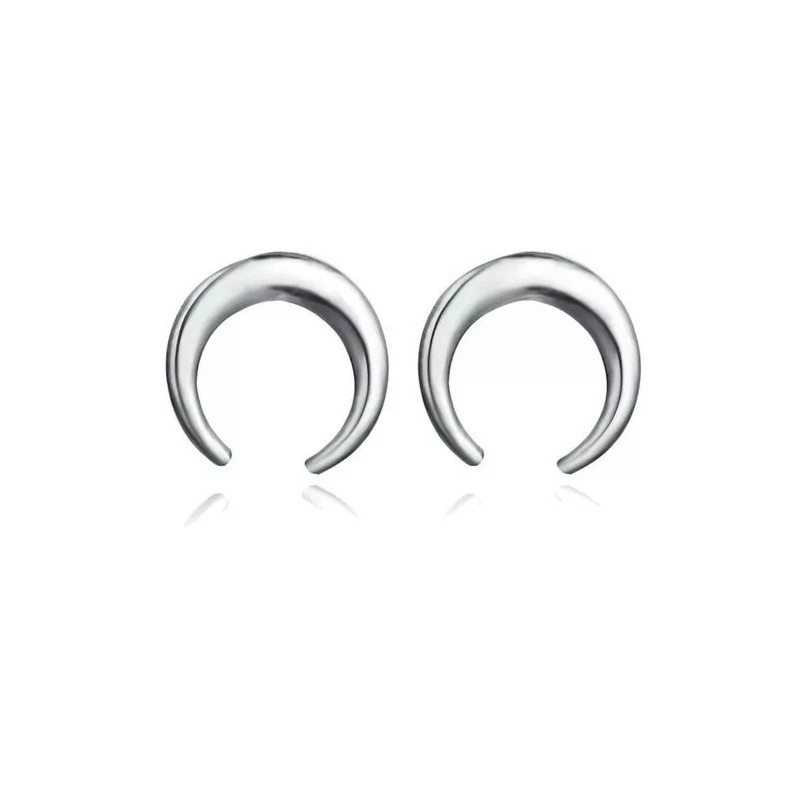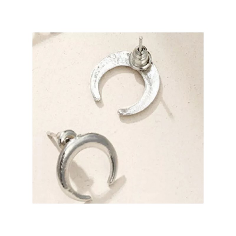 Crescent Womens Simple Minimalist Silver Tone Crescent Moon Stud Earrings