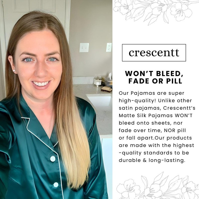 - HIGH-QUALITY MATTE SILK – Crescentt’s Matte Silk Satin Pajamas are made of the highest quality alternative to real silk. Our pj sets are 100% cruelty-free and vegan without sacrificing beauty and comfort of mulberry silk pyjamas.