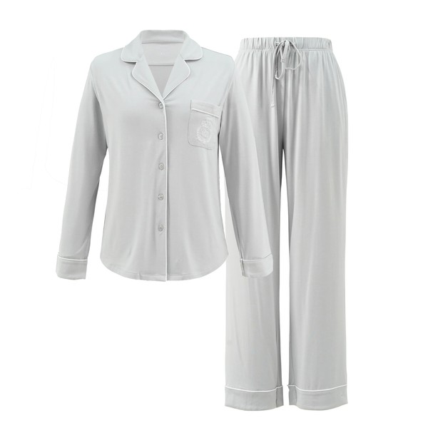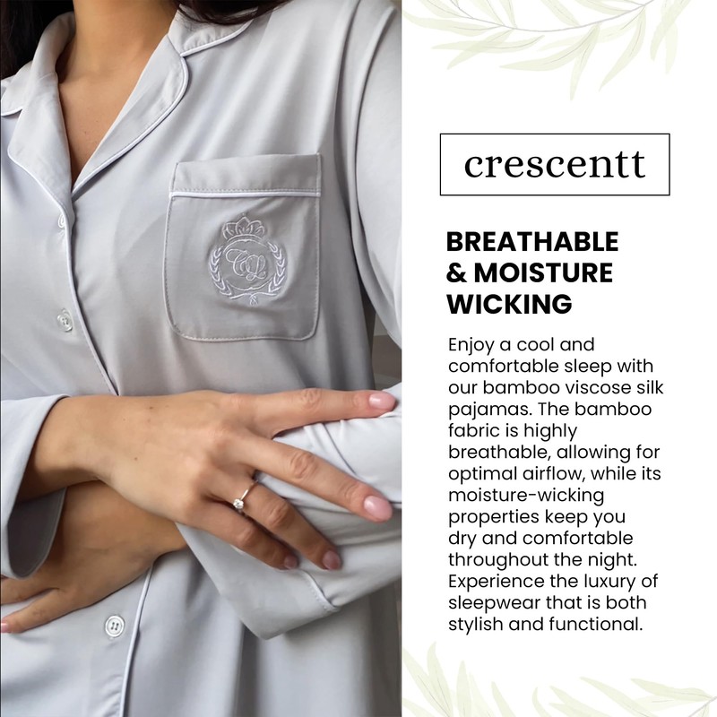 Crescentt Oeko-TEX Luxurious Organic Bamboo Viscose Silk Pajamas for Women - Ultra-Soft Sleepwear for Unparalleled Comfort (Platinum Gray, X-Large)