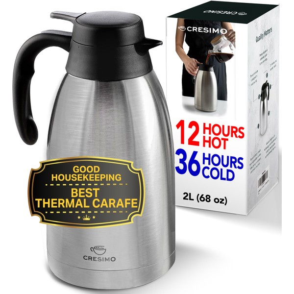 Cresimo Thermal Coffee Carafe 68oz / 2L - 12 Hours Hot Beverage Dispenser, Insulated Stainless Steel Carafe for Liquids, Coffee Carafes For Keeping Hot Water Dispenser for Parties - Large Tea Flask