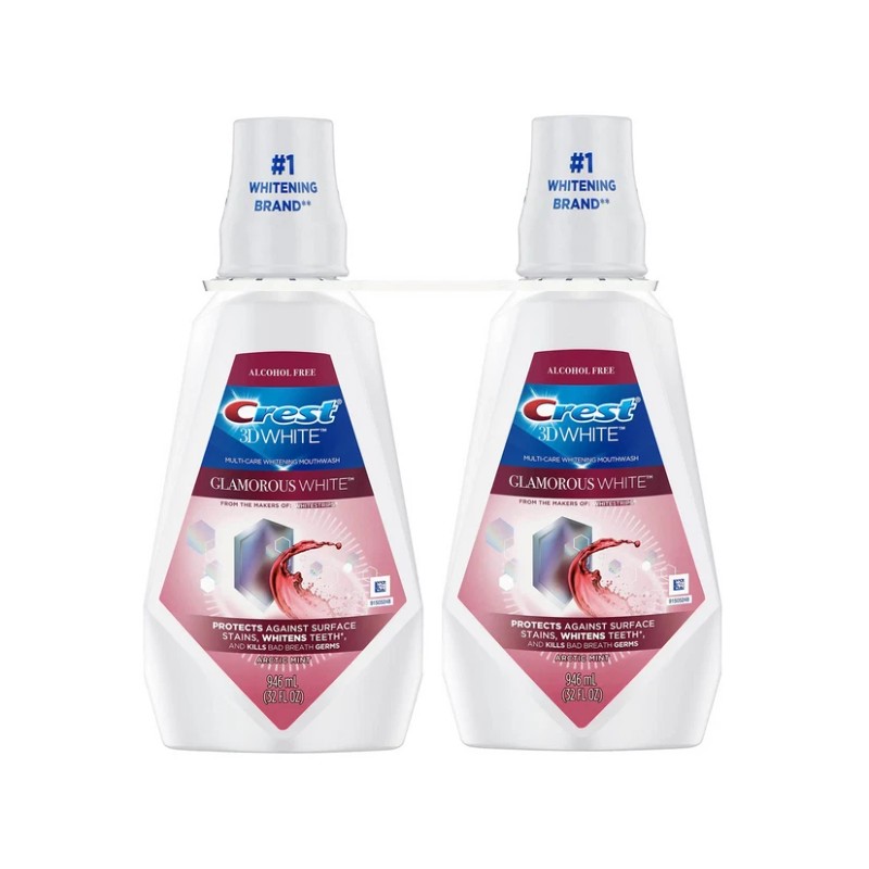 Crest 3D White Alcohol-Free Whitening Mouthwash, Arctic Mint,32 fl. oz., 2 pk