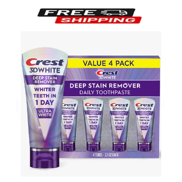 Crest 3D White Deep Stain Remover Whitening Toothpaste, 2.1 oz., 4 pk.