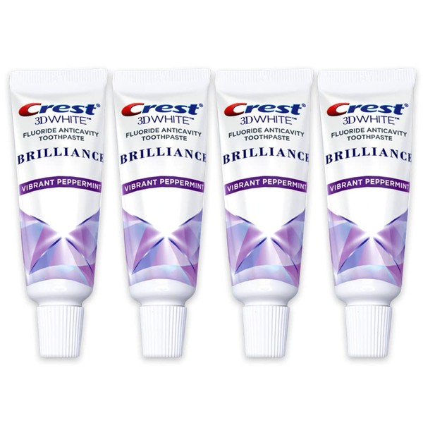 Crest Crest 3D White Brilliance Toothpaste, Vibrant Peppermint, Travel Size 0.85 oz (24g) - Pack of 4