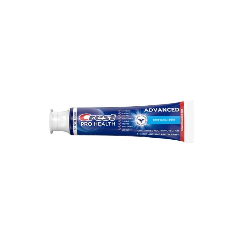 Starting from Day 1, Advance to Healthier Gums and Stronger Teeth* with Crest Pro-Health Advanced. This toothpaste contains ActivClean Crystals for advanced stain prevention. Crest Pro-Health Advanced Deep Clean Mint Toothpaste, like all Crest Pro-health toothpastes, cleans beyond what you can see and continues to work between brushings. It is made with patented stannous fluoride and provides clinically proven protection. It provides 8 advanced benefits in 1, including: protection against cavities, plaque and gingivitis, acid erosion† and tooth sensitivity for whole mouth health * vs. ordinary toothpaste with continued use. Starts fighting plaque and protecting enamel from Day 1. †Acid erosion effects: acids in everyday food can soften and thin enamel, leaving teeth less white, weaker and sensitive