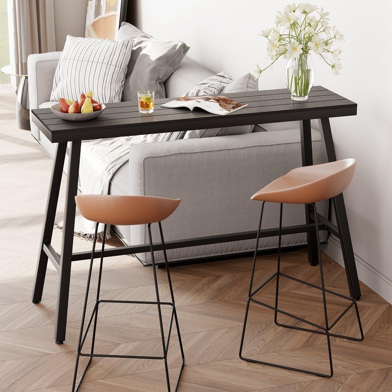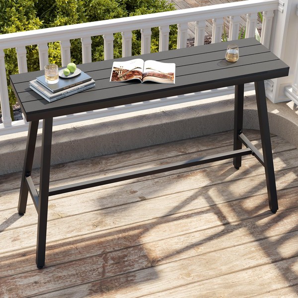 - Multifunctional Table: Overall Size: 55.12’’L x 15.55’’W x 37.01’’H. Maximum weight capacity: 165 LBS. This table is perfect for small places, used as a space-saving dining table, a high bar table, or a pub counter table, in bistro, kitchen, patio, lawn, garden, etc. Notice: Avoid long-term exposure to the sun in order to prolong the service life of this outdoor bar table.