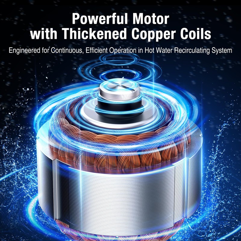 - Quiet Operation & Instant Hot Water: CrestWave Hot Water Recirculating Pump offers a quiet operation at just 25dB and reduced energy consumption. This pump eliminates the long wait for hot water—delivering it within 15 seconds for most outlets and just about 1 minute for kitchen faucets, saving you water and time. It's the perfect solution for reducing cold water waste and improving household comfort
