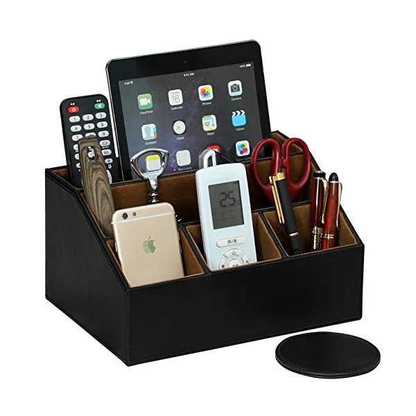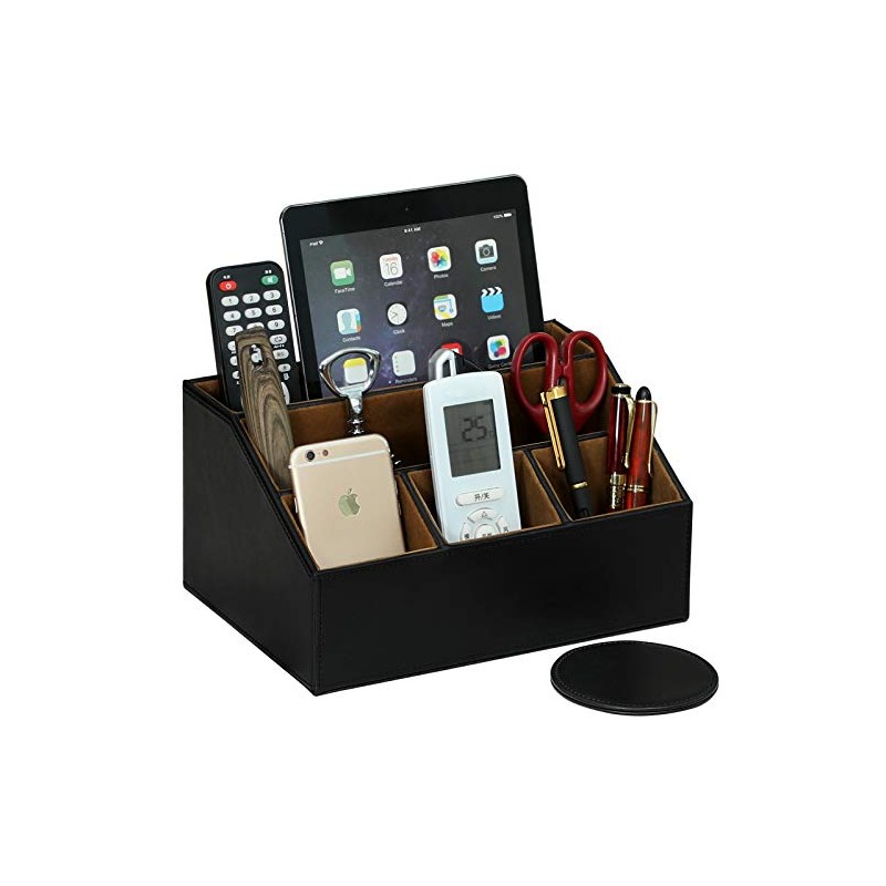 - [ Desk Organizer with 5 Compartments ] - It can hold remotes, tablets, notebooks and other items of different sizes, and is also great for organizing makeup and small household items