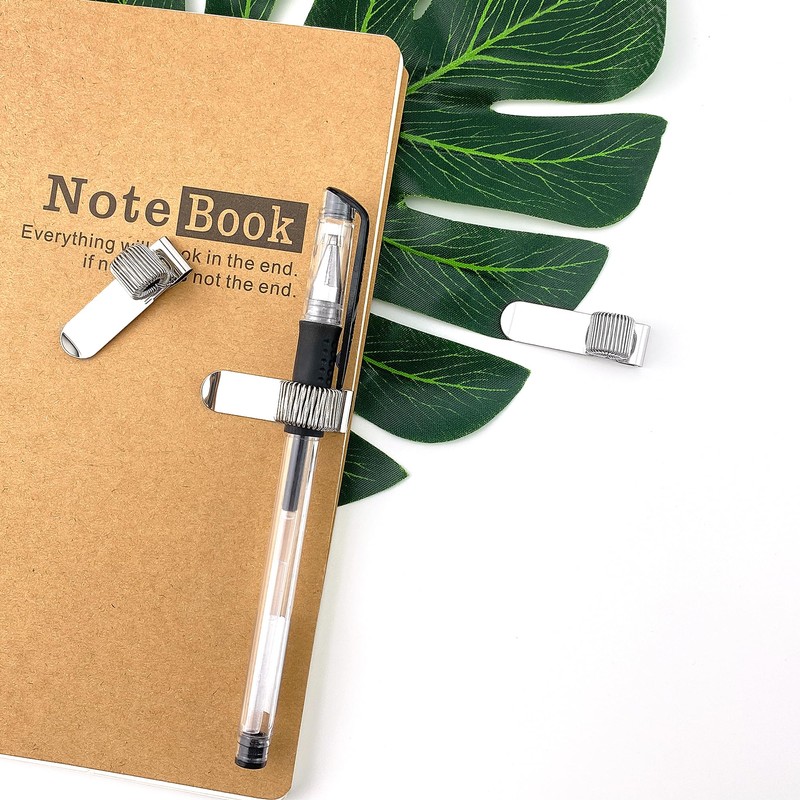 - Our pen holder is well made, with a sturdy clip, can be attached to thin cover notebooks, clipboards, calendars to keep your pens always at hand.
