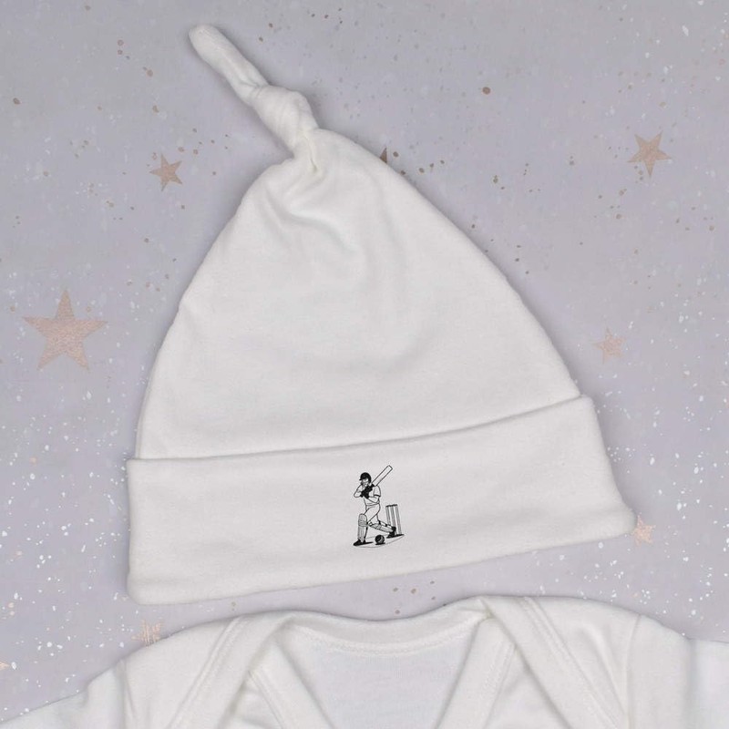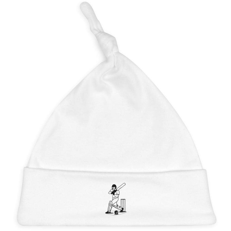 'Cricket Batter Action' Baby Beanie Hat (BH00035022) White