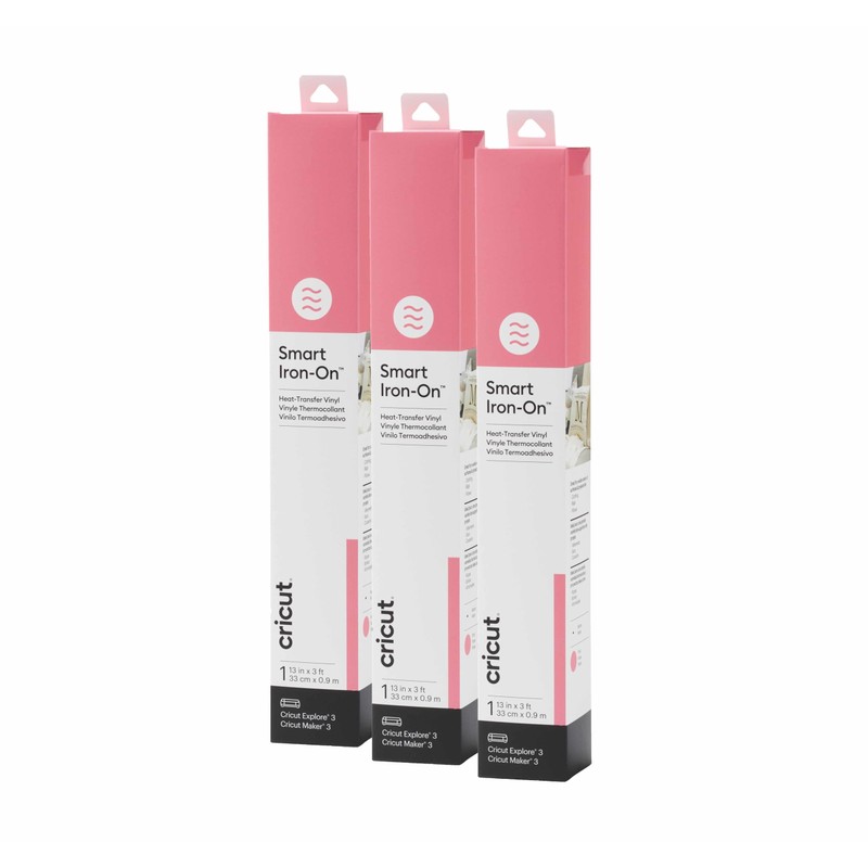 - INCLUDES - 3 rolls of Cricut Smart Iron-On HTV Vinyl, Pink - 3ft Roll (12"x36")