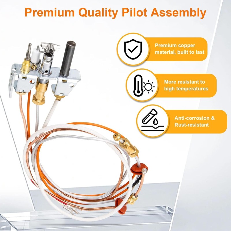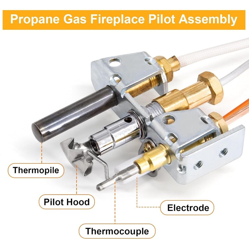 - 【Package Includes】- Propane Gas 446-511A Heat-n-glo Pilot Assembly Includes thermocouple, thermopile, sparker electrode and pilot tubing. This includes the bracket that goes next to the burner which holds it all together. ➤【Pilot Assembly Dimensions】28 1/4" Pilot Tube, 27 1/4" Thermocouple, 24" Thermopile, 26" Ignitor Wire.