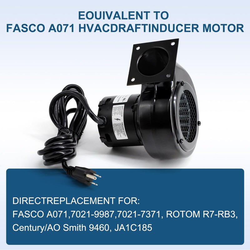 - Perfect Aftermarket Part--➤★Quality you can trust, fasco a071 centrifugal blower is made with premium materials and are tested so they last. ★The fasco draft inducer a071 is made of 100% pure copper stator winding, high quality cast aluminum rotor and seiko ball bearing, running smoothly, quiet and long service life.