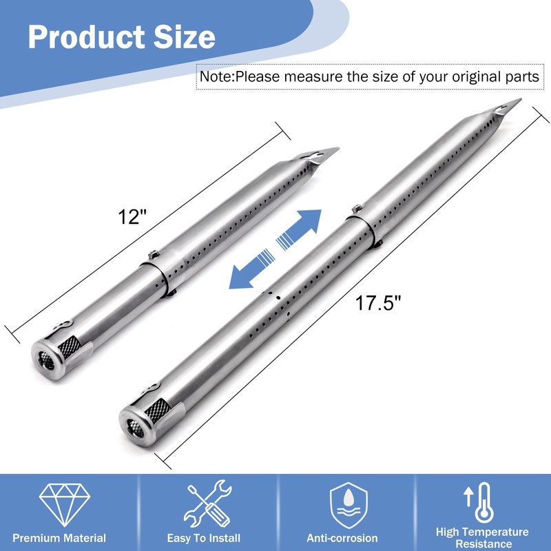 - 【Adjustable BBQ Burner】This 12" to 17-1/2" adjustable stainless steel burner tube, extend from 12 to 17.5 inch. You can adjust it to your desired length. Perfect for outdoor grilling and barbecuing.
