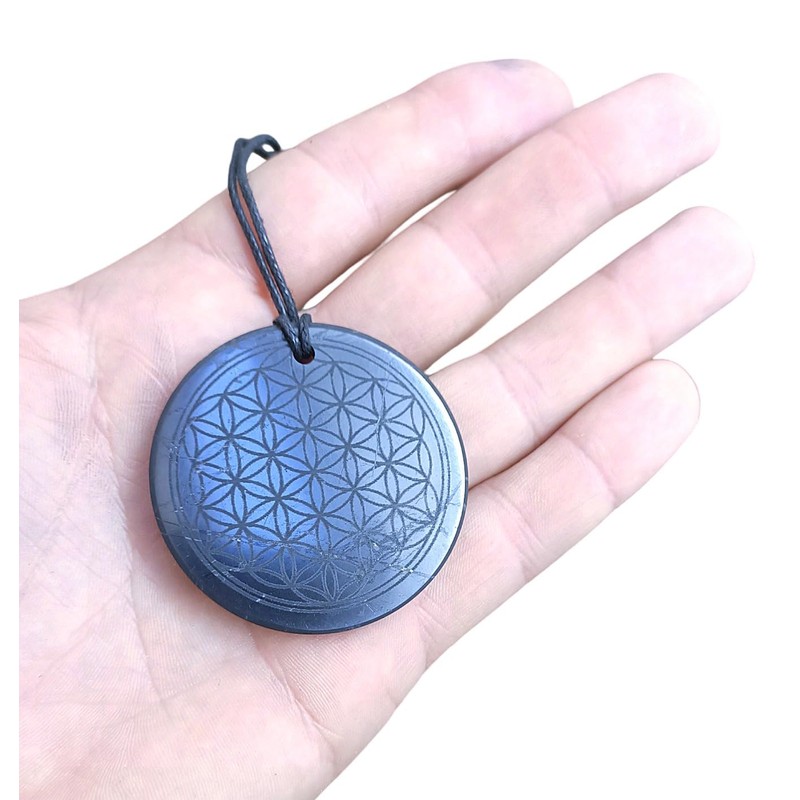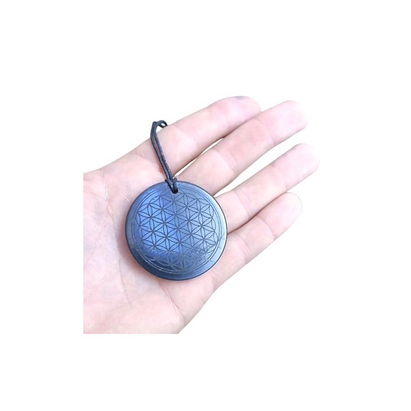 CRIGEMA - 100% Natural Shungite Stone in Russia (Flower of Life Pendant 50 mm)