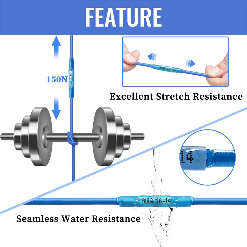 - DURABILITY– Each terminal in our wire connector kit features a strong copper barrel to hold the wire tight when crimped. Translucent heat shrink tubing provides high tensile strength as well as resistance to stretch and mechanical damage.
