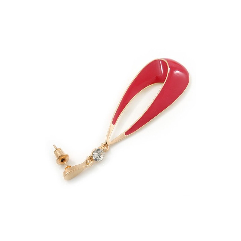 Crimson Red Enamel Teardrop Earrings In Gold Tone/65mm Long
