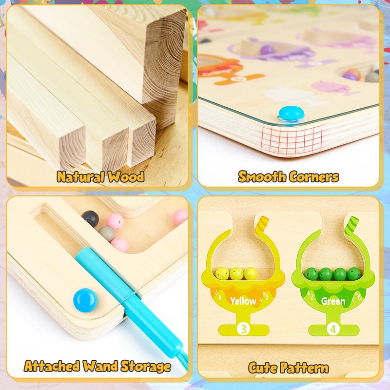 - ✅【Safe & Durable Premium Material】The CRIOLPO color and counting maze toy is made of natural wood with a smooth surface and rounded corners. High quality acrylic panels provide extra durability and stability. The closed magnetic beads prevent the risk of swallowing and make it safe for small children to play. The magnetic board also has a storage space for the magnetic pen so it does not get lost.