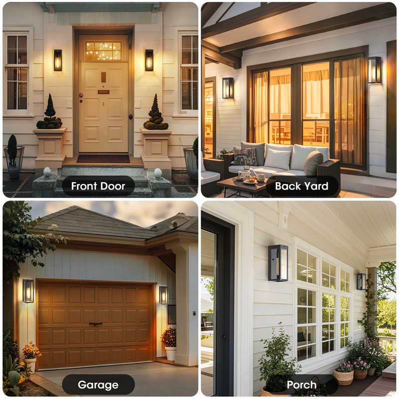 - [ Weather-resistant & Last for Long Time ] - Our large exterior wall lights crafted from premium heavy-duty metal, being waterproof and ready for all weather, rain or snow, ultra-high or low temperatures. These outdoor porch lights will never get rusty or corrosion after longtime of use, being sturdy and will remain sustainably as new and beautiful decor on your wall. It suitable for porches, garages, terraces, courtyards, balconies, and are not easily damaged or corroded even in thunderstorms and heavy snow.