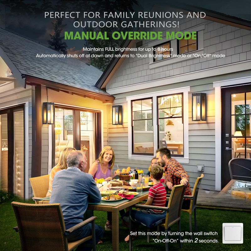 - [ Upgraded Motion Sensor Exterior Lights ] - CRIRY is a brand specializing in outdoor wall lights. Our outdoor wall lights feature advanced motion and photocell sensors that provide 3 lighting modes for smart, energy-efficient lighting. In addition, these motion sensor porch lights feature the latest sensor design for a sleek look and easy operation. You can effortlessly switch between motion sensor modes at the touch of a button and say goodbye to complicated mode switching steps.