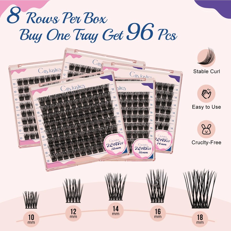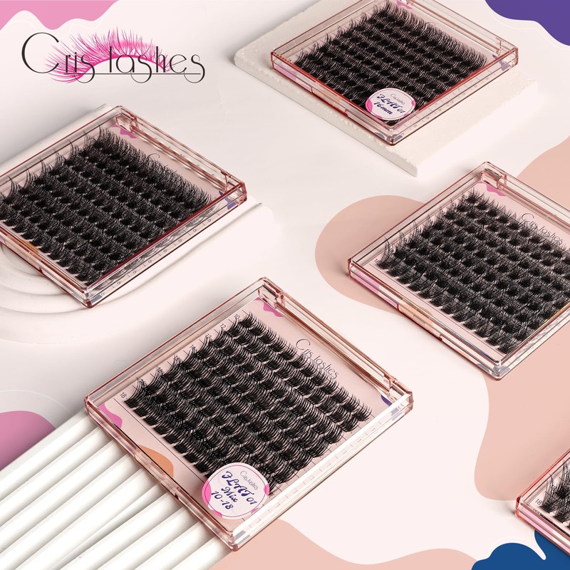 • 【PRO-GRADE DESIGN WISPY DIY LASHES】 Crislashes' new design cluster eyelash extensions are made of super thin and soft material, providing a more comfortable wearing experience than ever before. They are available in 5 different lengths (10mm, 12mm, 14mm, 16mm, and 18mm, as well as a mix of lengths from 10mm to 18mm), allowing you to customize your lash look according to your preferences.