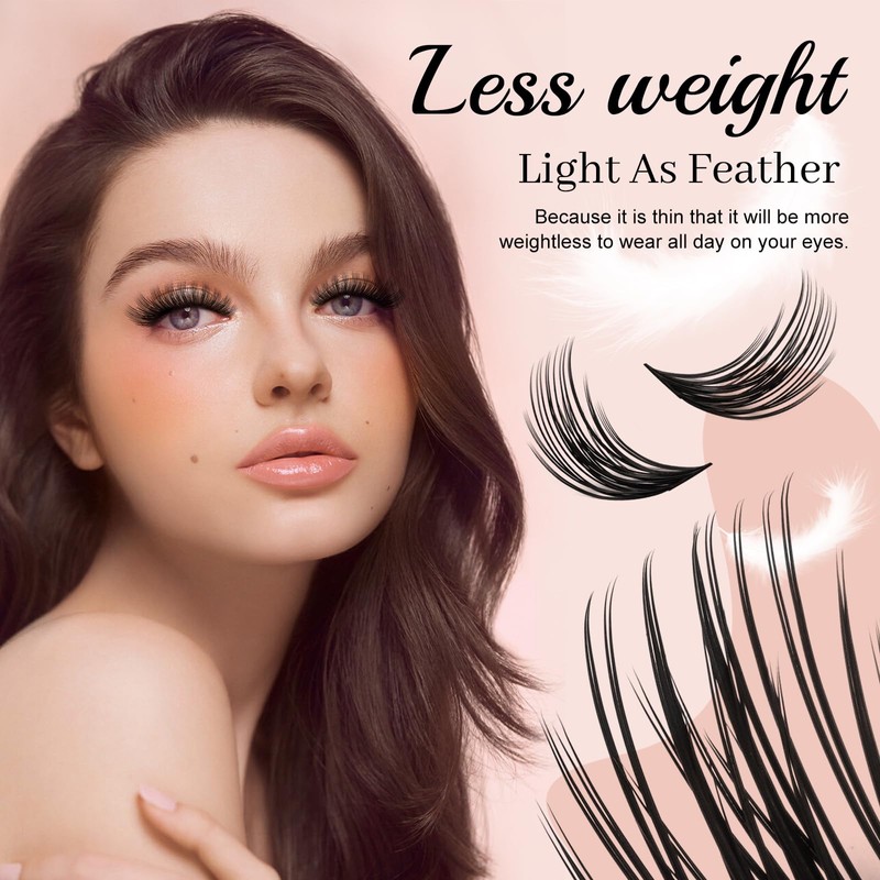 • 【MORE LIGHTWEIGHT】 The lash extension clusters are lighter in weight, providing increased volume without adding extra weight to your natural lashes. These thin, wispy lash clusters have been cleverly designed to create excellent bonding and give a glamorous appearance. The lightweight nature of these lashes makes them feel almost weightless when worn.