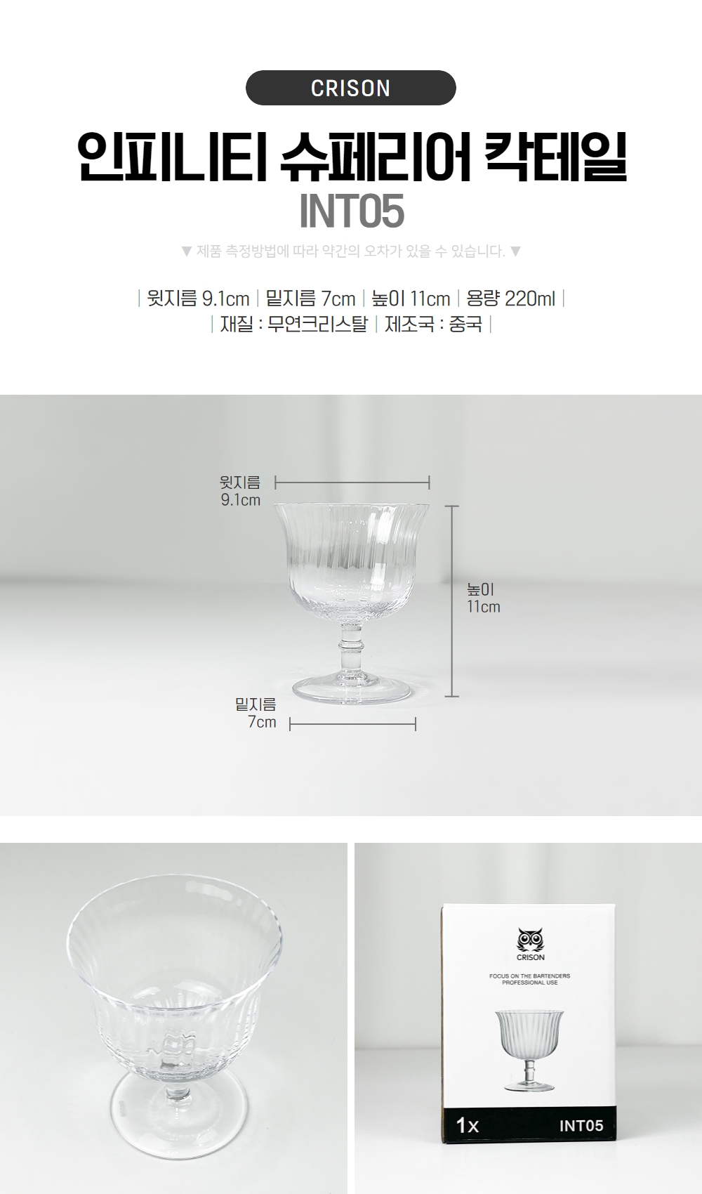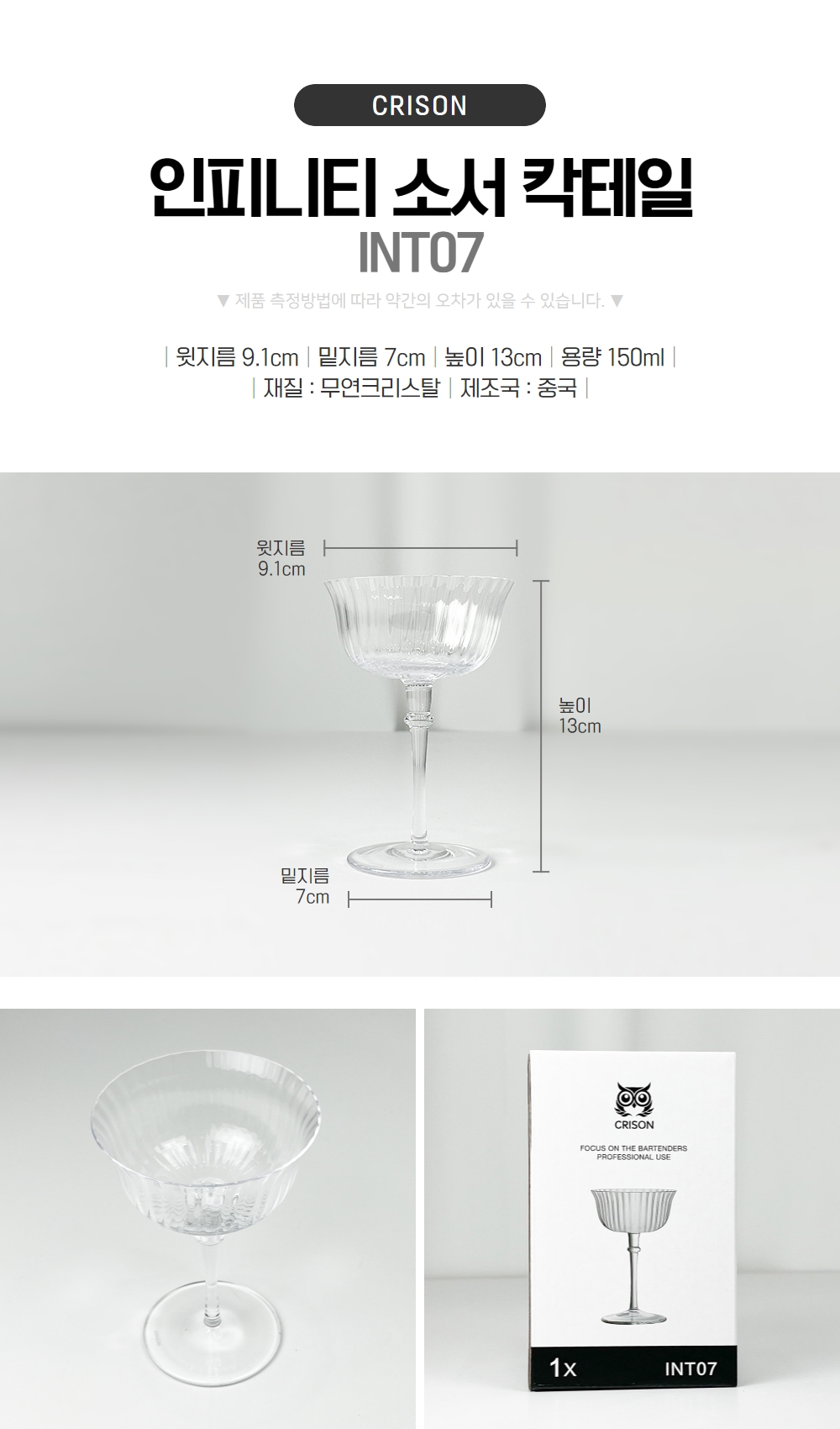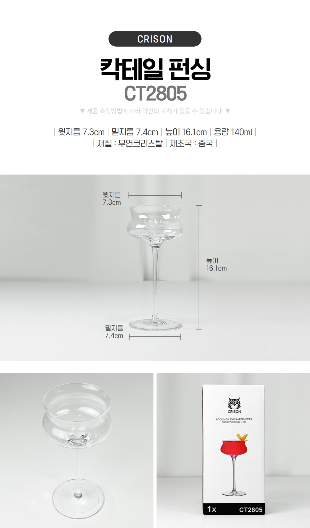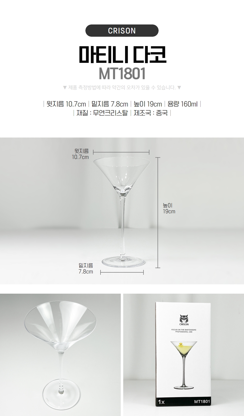 Crison Martini Darko MT1801 160ml premium crystal glass cocktail glass / 크리슨 마티니 다코 MT1801 160ml 프리미엄 크리스탈 유리잔 칵테일잔