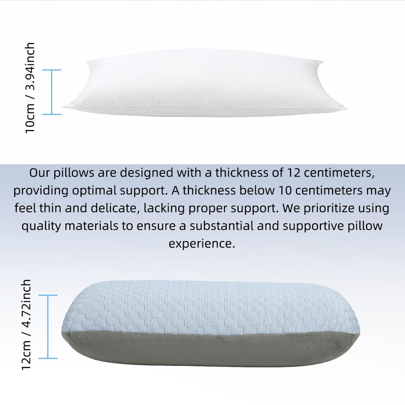- Optimal Dimensions - Measuring 19.7inches x 11.8in x 4.72in(50cm x 30cm x 12cm), our travel pillow strikes the perfect balance between thin and thick. Thin pillows can lead to neck and shoulder discomfort, which is why we've chosen a premium 12cm thickness for your comfort.