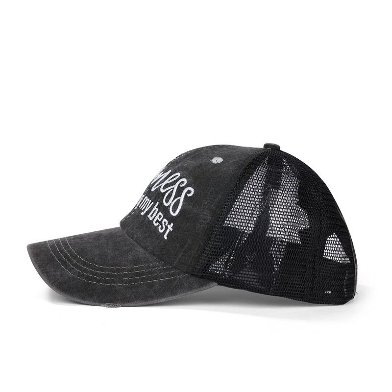Criss Cross Ponytail Hat Baseball Caps for Women Mesh Back Distressed Messy Trucker Hat Pony Embroidery Hiking Golf Running Hats