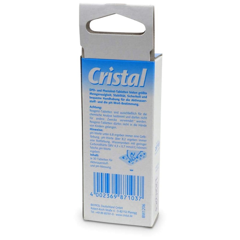- Accurate measurement: suitable for the Cristal water tester oxygen/pH, as well as other pool testers with test tablets available on the market. The corresponding test device in combination with the DPD and phenolrot tablets offers high measurement accuracy, safety and convenient handling for the determination of active oxygen and pH value.