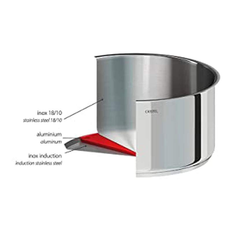 Cristel C14QKPAMAN Mutine Set with 1 qt Saucepan with Lid, long handle and 2 grips (5-Piece), Silver