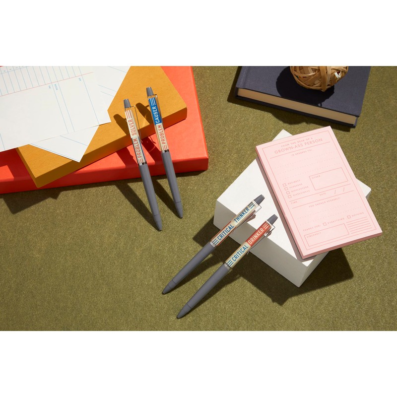 - Einzigartiges Design – Diese im Vintage-Stil inspirierten fließenden Stifte von Brass Monkey verfügen über Wörter, die sich bewegen und ändern, wenn Sie mit ihnen interagieren. Stift 1: Critical Thinker (wechselt zu Critical Drinker, wenn er verwendet wird). Stift 2: Problem Solver (wechselt zu Problem Causer, wenn er verwendet wird).