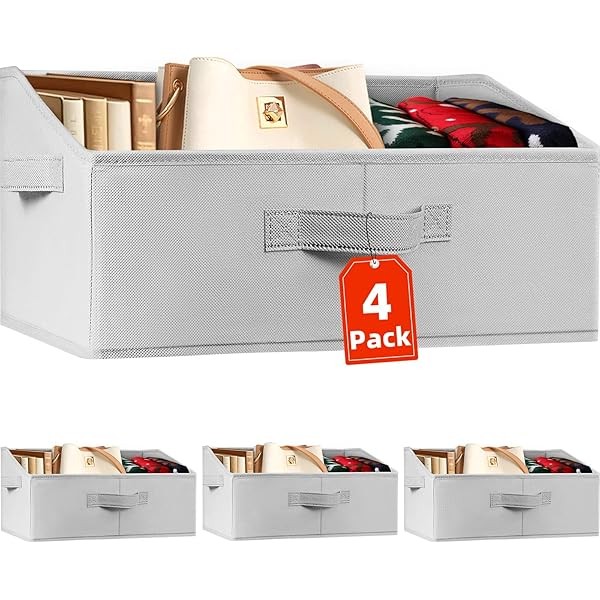 Criusia 4 Pack Large Closet Shelf Organizer Bins with Handles - Fabric Trapezoid Storage Baskets for Clothes, Towel, Blanket, Purse, Hats
