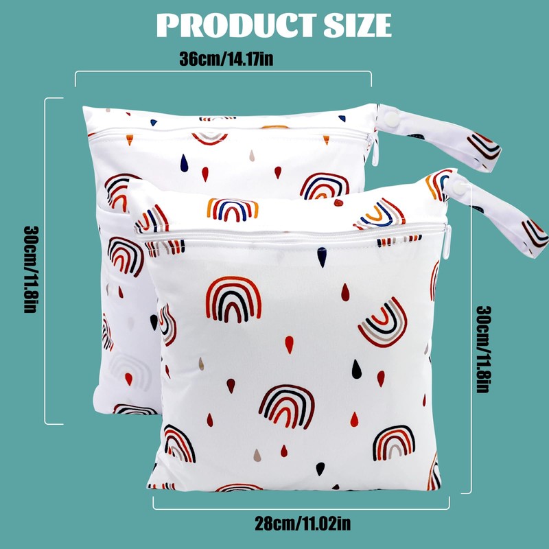 - Size: you will receive 2 wet bags (size 36 x 30 cm or 30 x 28 cm), the nappy bags are beautifully patterned, well sewn and stable. The large wet bag has 2 zips and 2 compartments for wet and dry separation and holds approx. 8-10 nappies. The small wet bag has only 1 zip and 1 separate compartment and holds approx. 5-7 cloth nappies.