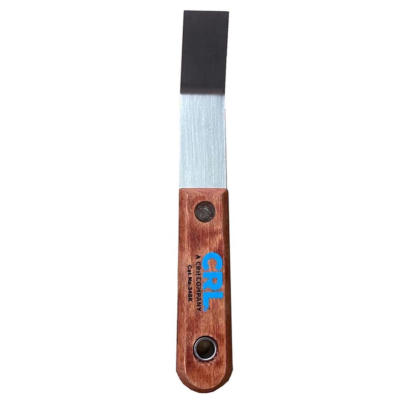 The CRL 3/4" Stiff Steel Putty knives are made with a .04" (1mm) thick stainless steel blade that is tightly fastened to the wood handle and held by an eyelet rivet making them easy to hang for storage. They come in three different styles: a Bent Knife with a 35º radius bend, a Chisel Edge, and a Flat Edge Scraper. These are great narrow tools perfect for smoothing or scraping in tight spaces. The blade width is 3/4" (19 mm), and the overall length is 6-1/2" (165 mm).