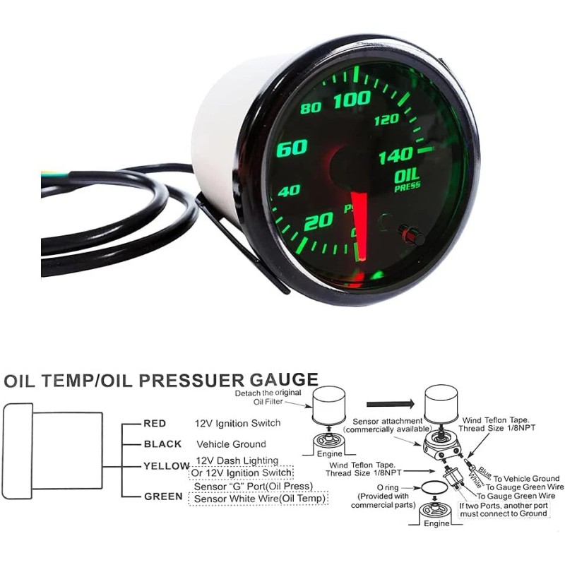 CRLEFU 2" 52mm Digital LED Electronic Oil Pressure Gauge 0-140 PSI Sensor Meter Kit FL