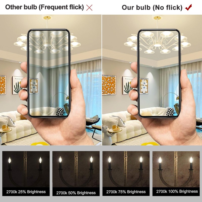 1. La mayoría de las bombillas incandescentes o CFL tradicionales no se pueden utilizar para la atenuación de bombillas LED, y algunos atenuadores de baja calidad pueden causar parpadeo o no funcionan, para atenuar estas bombillas LED, actualiza tus interruptores de atenuación para soportar bombillas LED.