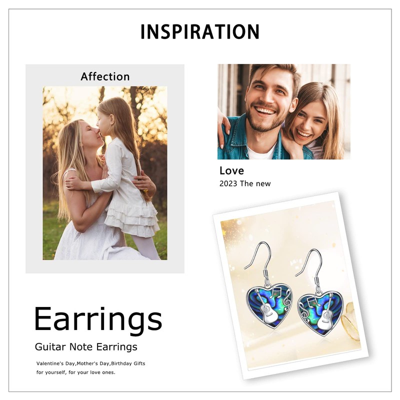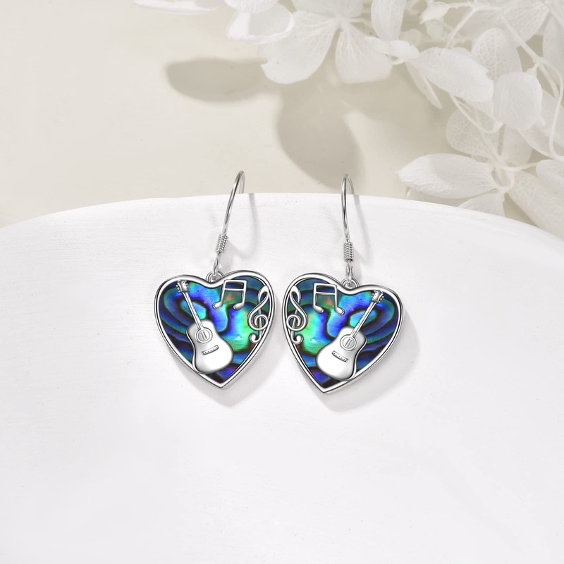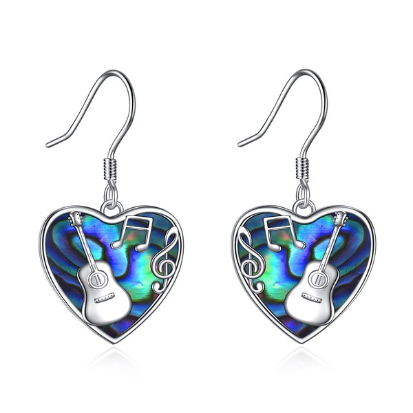 CRMAD Guitar Abalone Earrings for Women Sterling Silver Dangle Drop Earrings