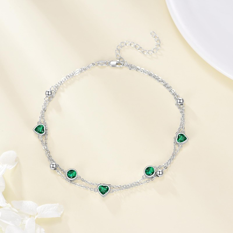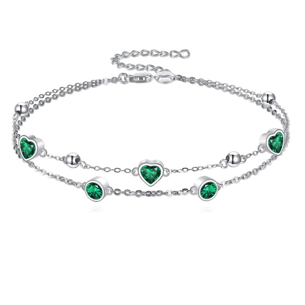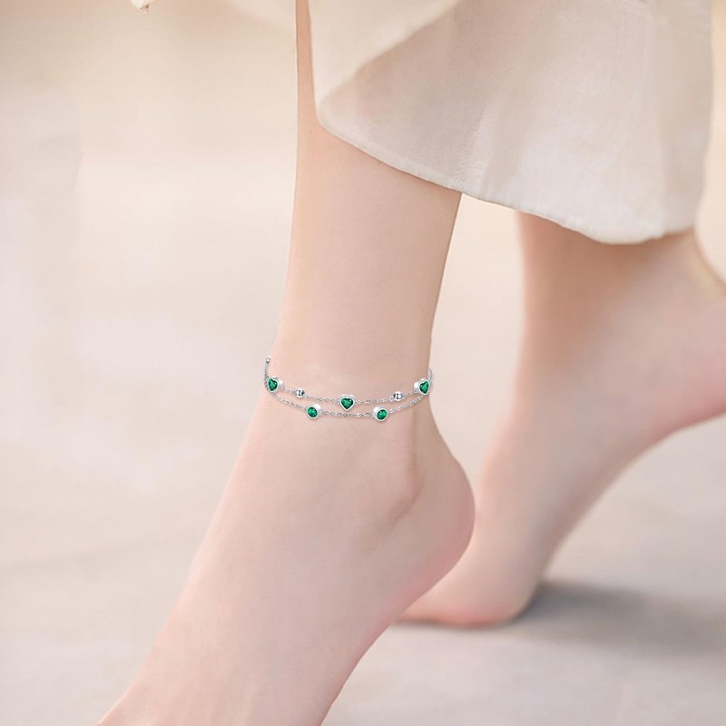CRMAD Heart Green CZ Anklet for Women S925 Sterling Silver Beach Bead Ankle Jewelry Gift for Valentine’s Day Birthday Anniversary